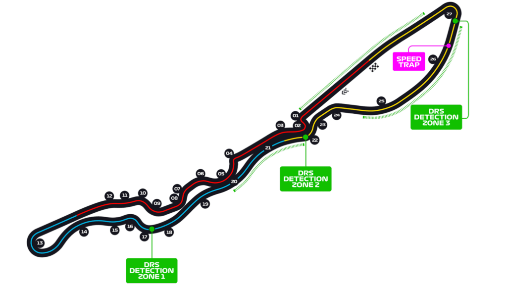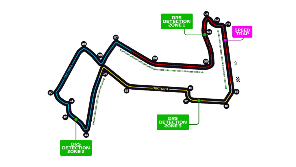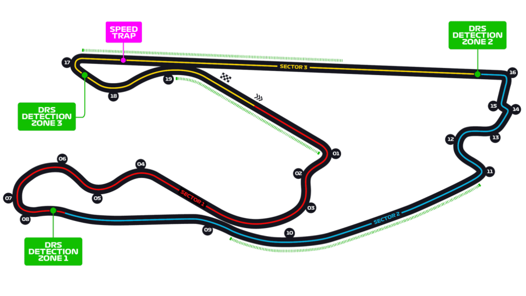 The track rewards high-confidence drivers who can extract performance during rapid transitions, especially through Turns 1-3 and the high-speed chicane at Turns 9-10. Overtaking is traditionally difficult, but the extended DRS zones has improved raceability in recent years, creating strategic battles around pit stop timing and medium-to-hard tyre management.